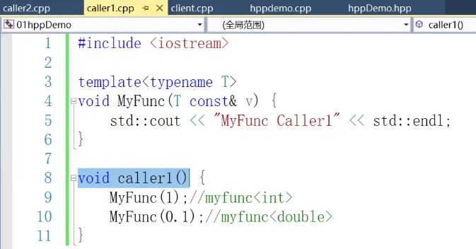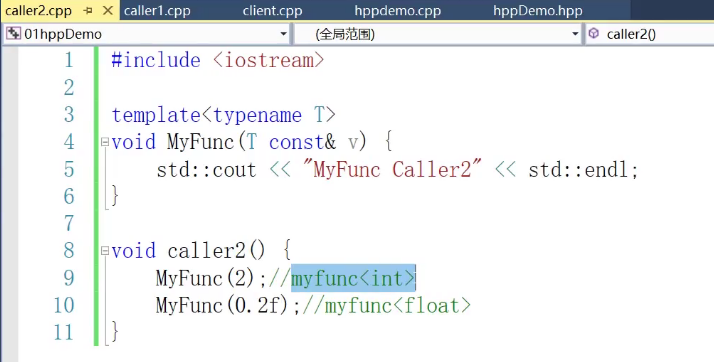 因为myfunc(1)和myfunc(2)都会实例化模板函数为myfun<int>(),只会生成一个,而如果要两个都做,那就加命名空间进行区分