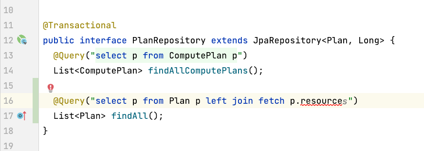 @Query("select p from Plan p left join fetch p.resource")
