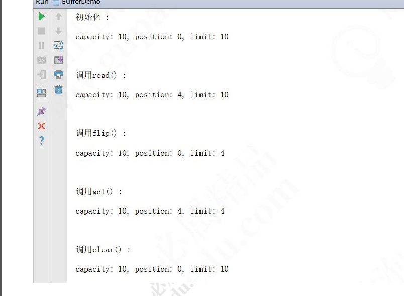 以上三个属性值之间有一些相对大小的关系:0 <= position <= limit <= capacity