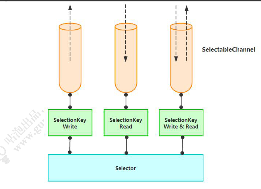 当有读或写等任何注册的事件发生时,可以从Selector 中获得相应的SelectionKey,同时从SelectionKey 中可