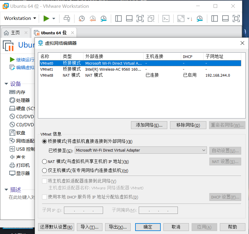 第一个是VMware软件里编辑-虚拟网络编辑器。在这里编辑虚拟机的网络设置。
