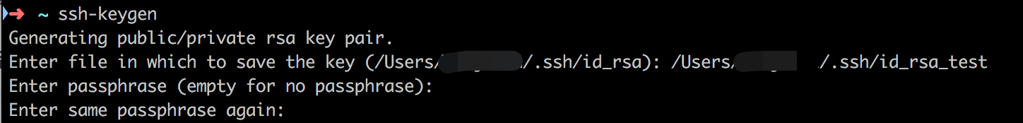 如果是第一次生成公钥,则直接一路回车确认就行。公钥和私钥会自动生成到/Users/[用户名]/.ssh路径下。默认公钥文件名为id_rsa.pub,私钥文件名为id_rsa。