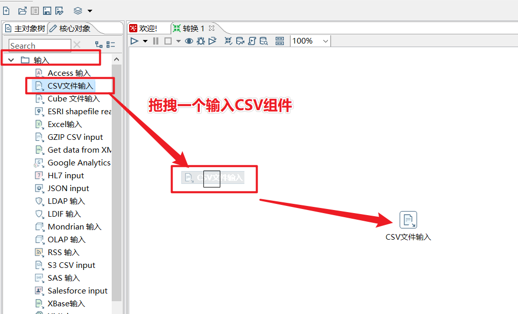 设置一个CSV文件输入组件
