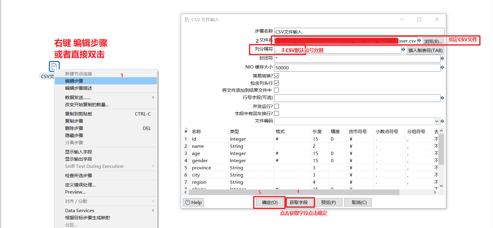 配置CSV文件输入组件