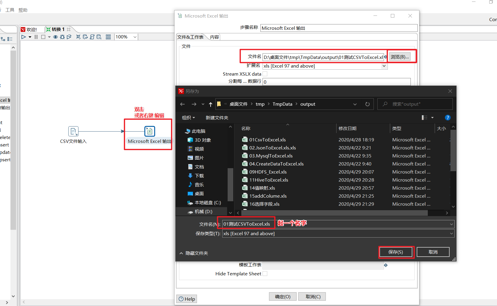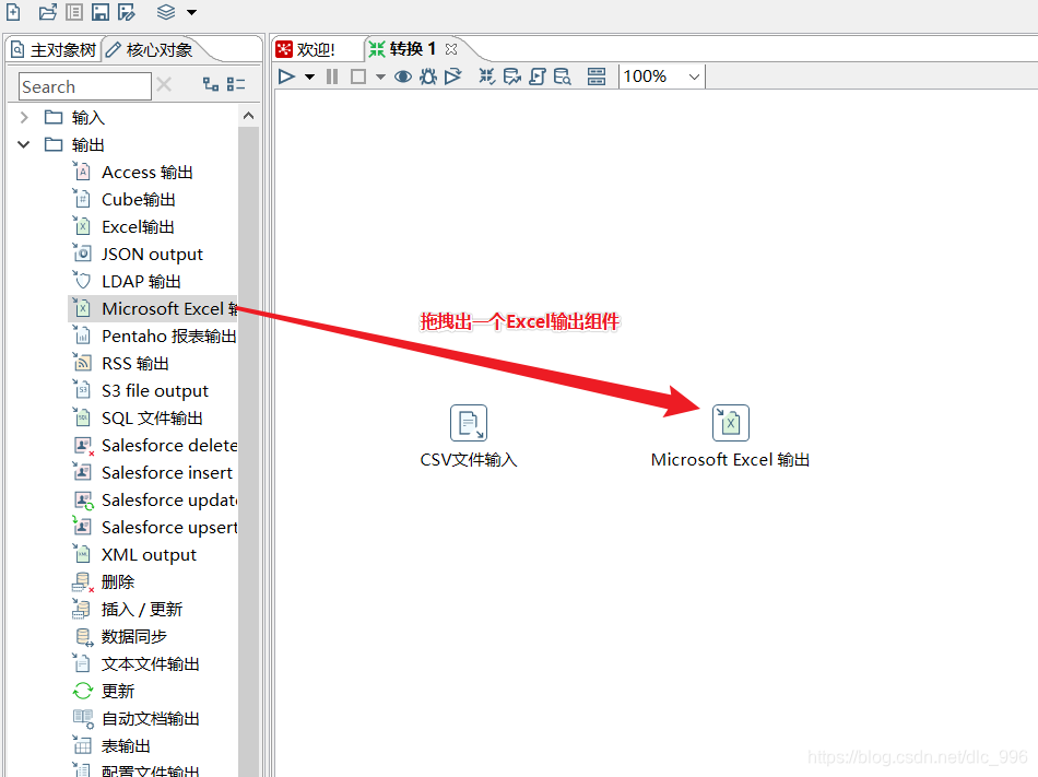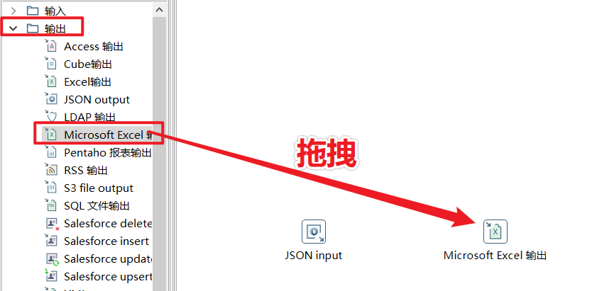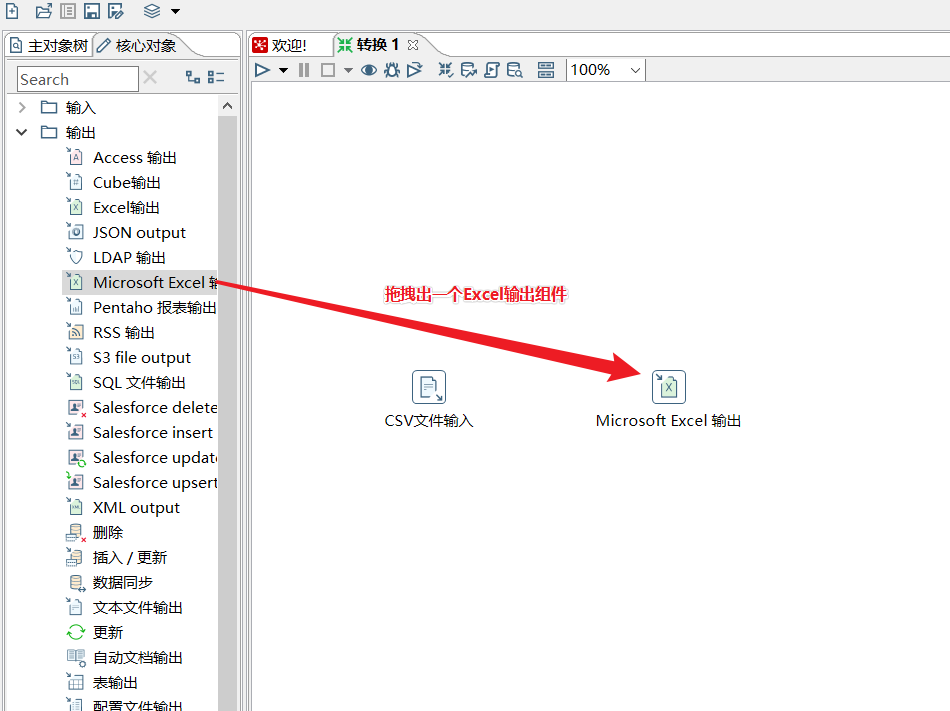 拖拽出一个Excel输出组件