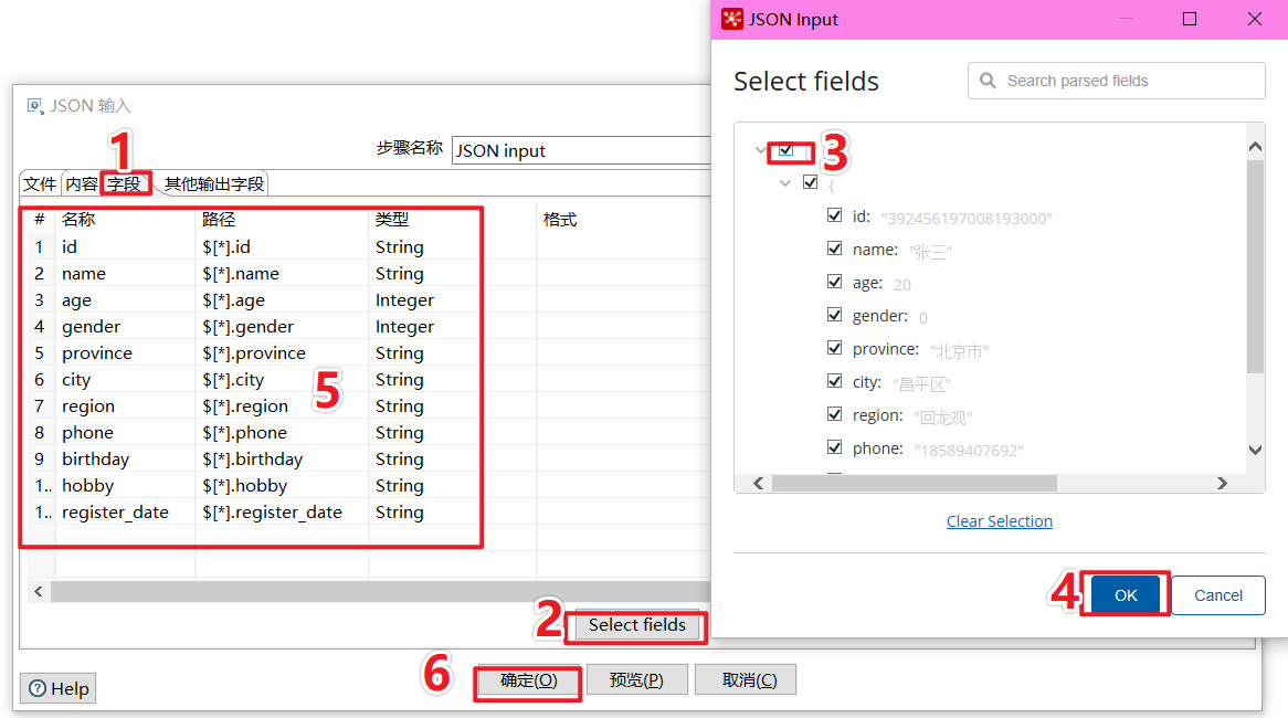 配置JSON输入组件