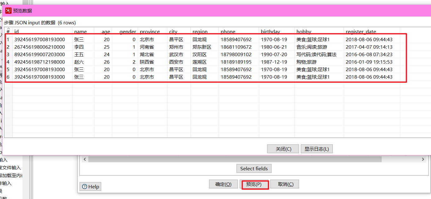 添加一个JSON文件输入组件