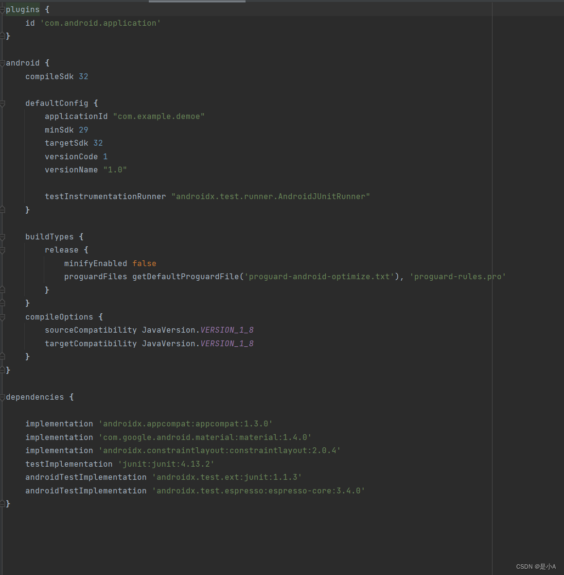 (9)buildTypes:指定生成安装文件的配置,常有两个子包release和debug