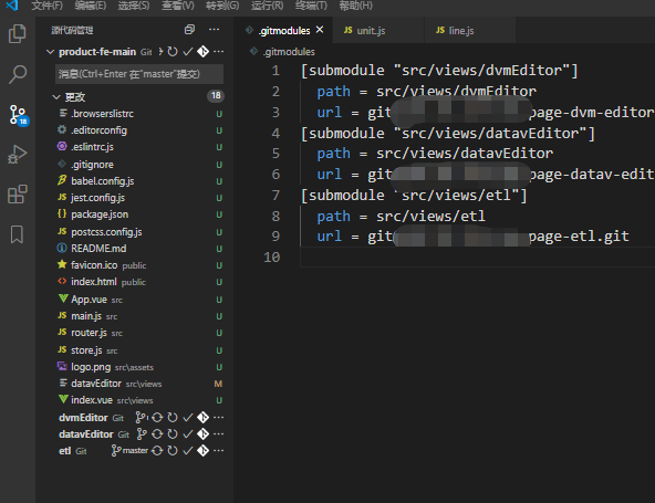 git push修改datavEditor子模块文件后,库1(主库) 的git是只会监听到子库有修改文件的日志(这个东西需要上传到主库,后期才能拉取到最新的子库代码),主要代码还是会提交到库2里,直接到datavEditor对应的目录下提交子库代码就可以了