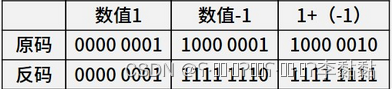 - 负数的原码转反码: 符号位不变;数值位按位取反;