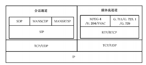 联网系统在进行视音频传输及控制时应建立两个传输通道:会话通道和媒体流通道。会话通道用于在设备之间建立会话并传输系统控制命令;媒体流通道用于传输视音频数据,经过压缩编码的视音频流采用流媒体协议RTP/RTCP传输。