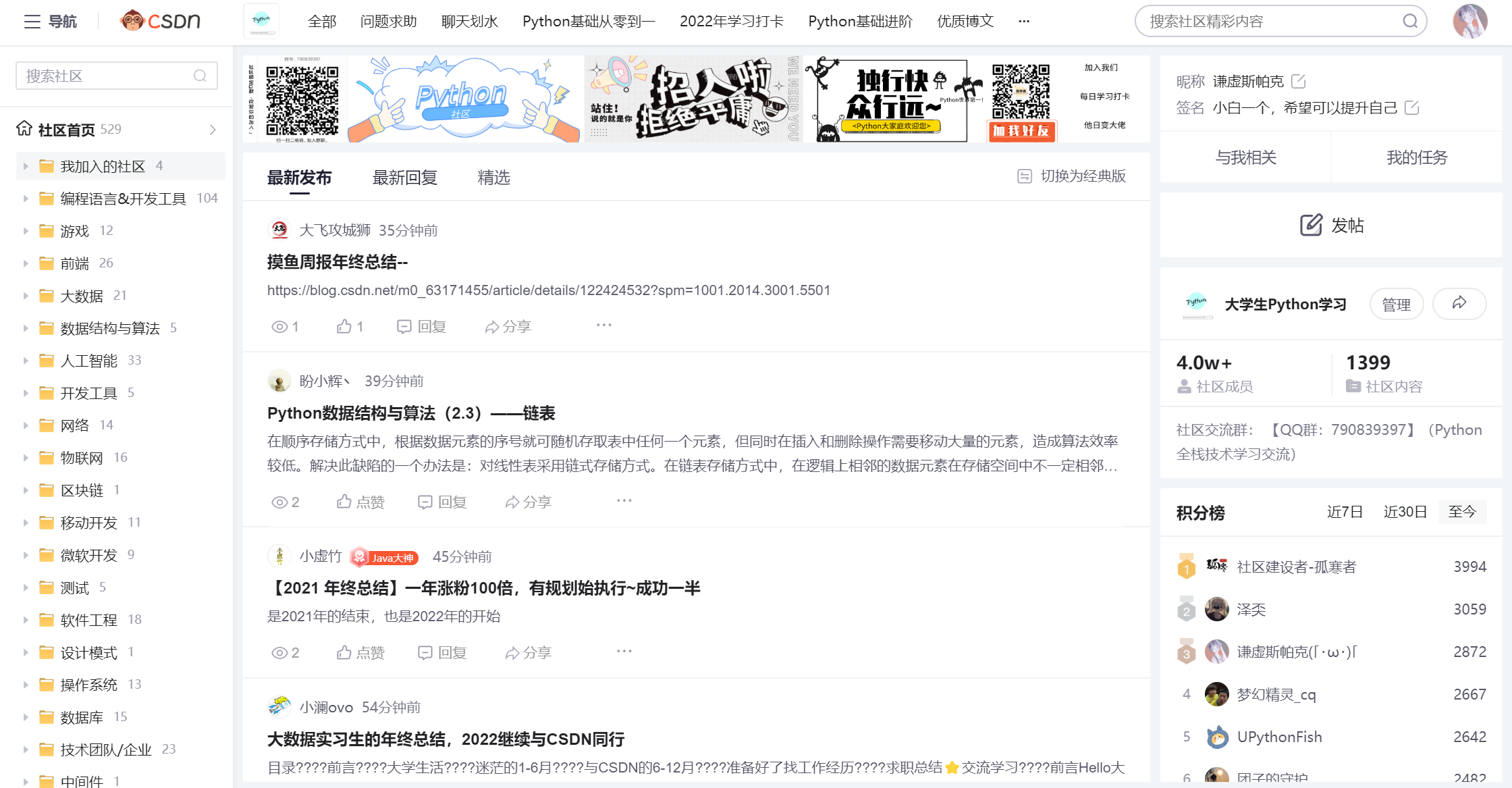 21年年底,关注的博主准备开展假期力扣每日刷题活动,而且参与的人一两百,内心直呼这是要疯狂学起来的操作?当然了,自己也不会错过这个好机会,提升自己的大好时机! - 不得不补一句,CSDN这个平台是真的香,虽然只加入67天,但是这段时间不仅开拓自己的眼界,认识到各种大佬,看着他们写的文章自己虽然看不懂(这个真的看不懂),但是慢慢补知识,也会越来越眼熟~