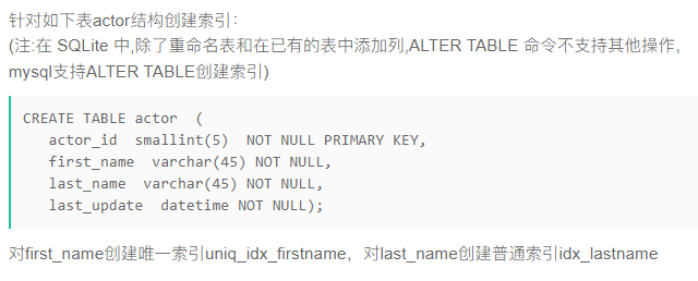 创建索引时,你需要确保该索引是应用在 SQL 查询语句的条件(一般作为 WHERE 子句的条件)。