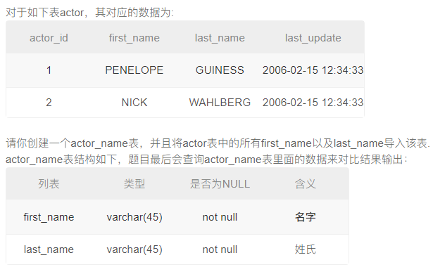insert into actor_name select first_name, last_name from actorcreate table actor_name