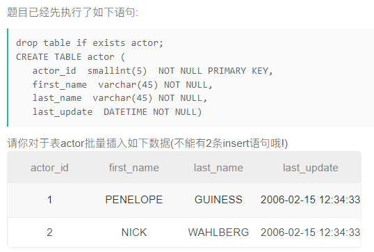 (2,'NICK','WAHLBERG','2006-02-15 12:34:33')例2:
