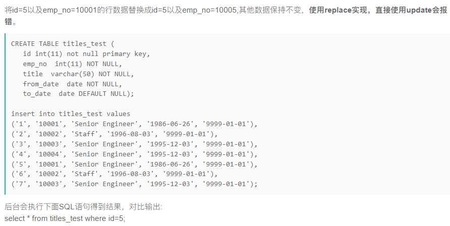 insert repalce:插入替换数据,如果存在主键或unique数据则替换数据