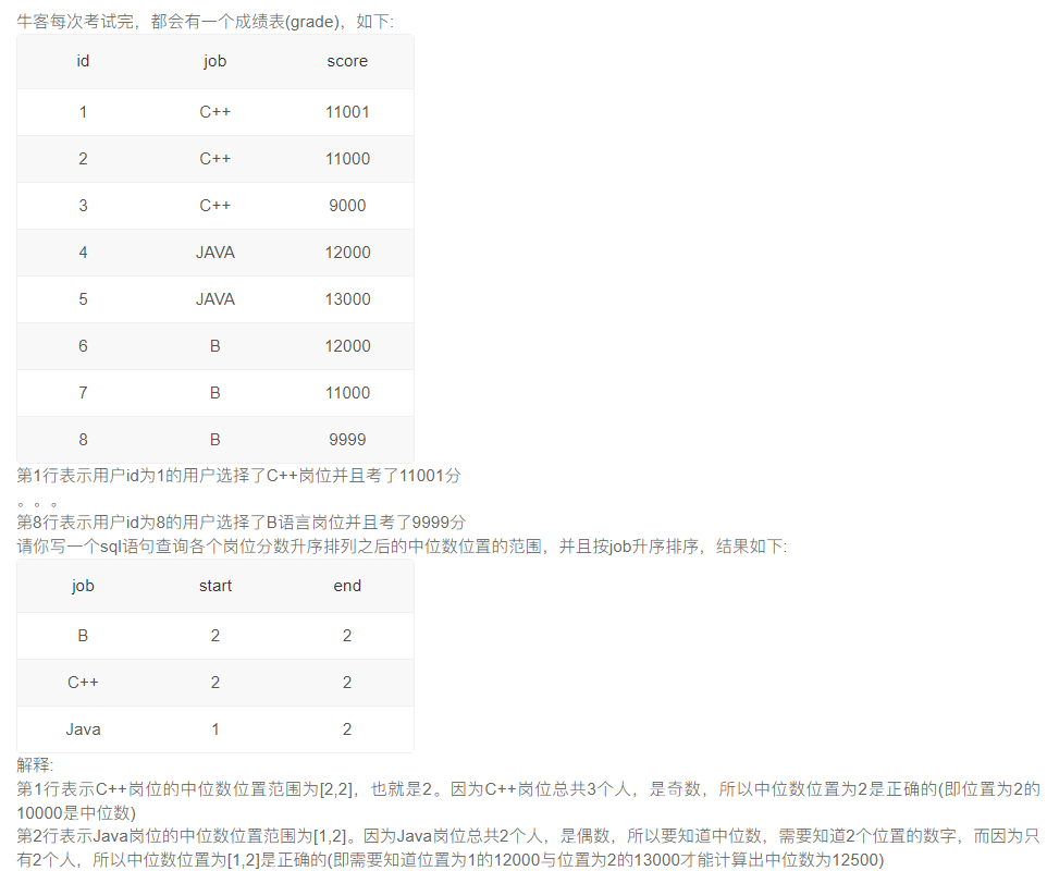 left join (select job, round(count(id)/2,0) start, round((count(id)+1)/2,0) end