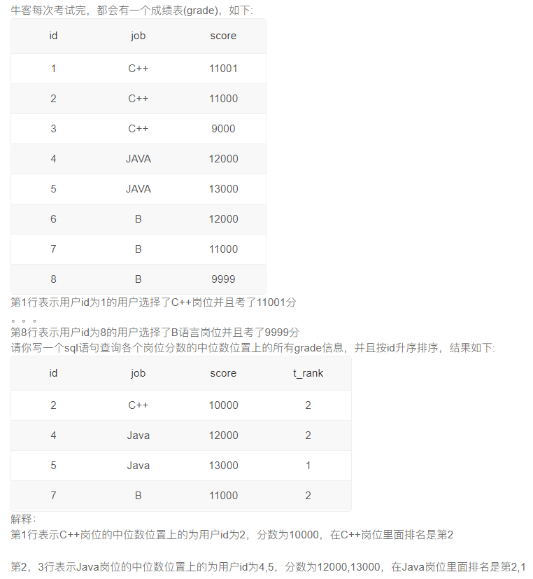 select id, job, score, rank()over(partition by job order by score desc) t_rank