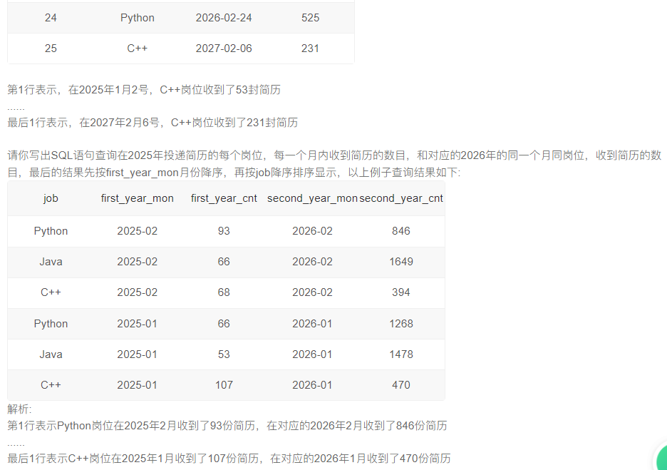 select a.job, b.mon first_year_mon, b.cnt first_year_cnt,