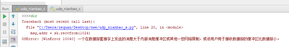 client.close()注意:先运行server,然后再运行client,然后你会发现client这个文件再输出台的地方让你输入内容,你输入一个内容然后回车,你会发现server那边的控制台就输出了以client发送的内容