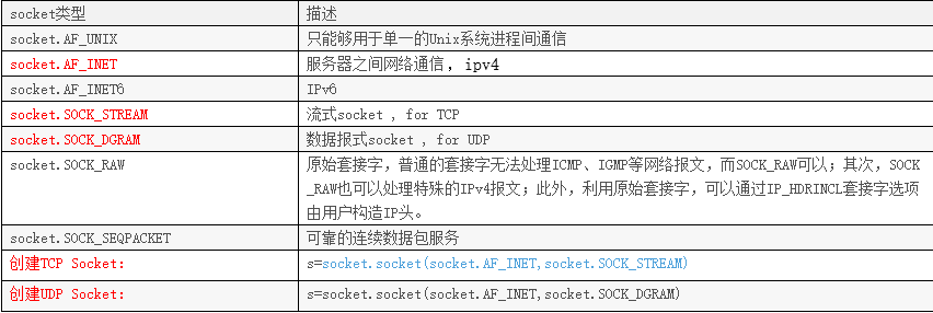 (还有AF_INET6被用于ipv6,还有一些其他的地址家族,不过,他们要么是只用于某个平台,要么就是已经被废弃,或者是很少被使用,或者是根本没有实现,所有地址家族中,AF_INET是使用最广泛的一个,python支持很多种地址家族,但是由于我们只关心网络编程,所以大部分时候我们只使用AF_INET)