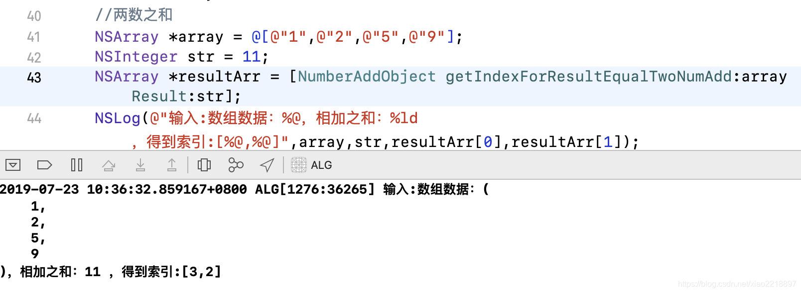 + (NSArray *)getIndexForResultEqualTwoNumAdd:(NSArray *)array Result:(NSInteger)result {