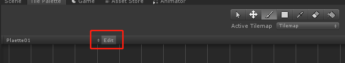 瓦片地图绘制工具位于 Tile Palette 窗口顶部的一行中。这些工具也用于编辑瓦片面板 (Tile Palette) 本身。
