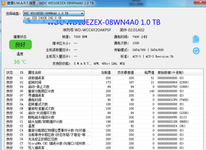 2、在电脑硬盘S中.M.A.R.T.在内容中,可以看到现阶段电脑磁盘的使用时间以及是否有损坏的磁道等相关信息。一般来说,使用时间超过1万小时可能会出现问题。建议考虑拆卸和更换电脑磁盘。