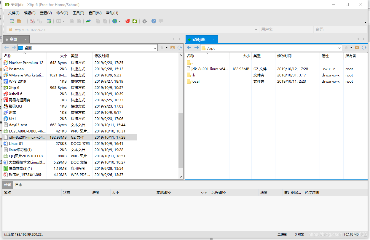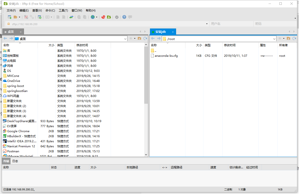 二,通过Xftp 6将jdk的压缩包传到虚拟机中