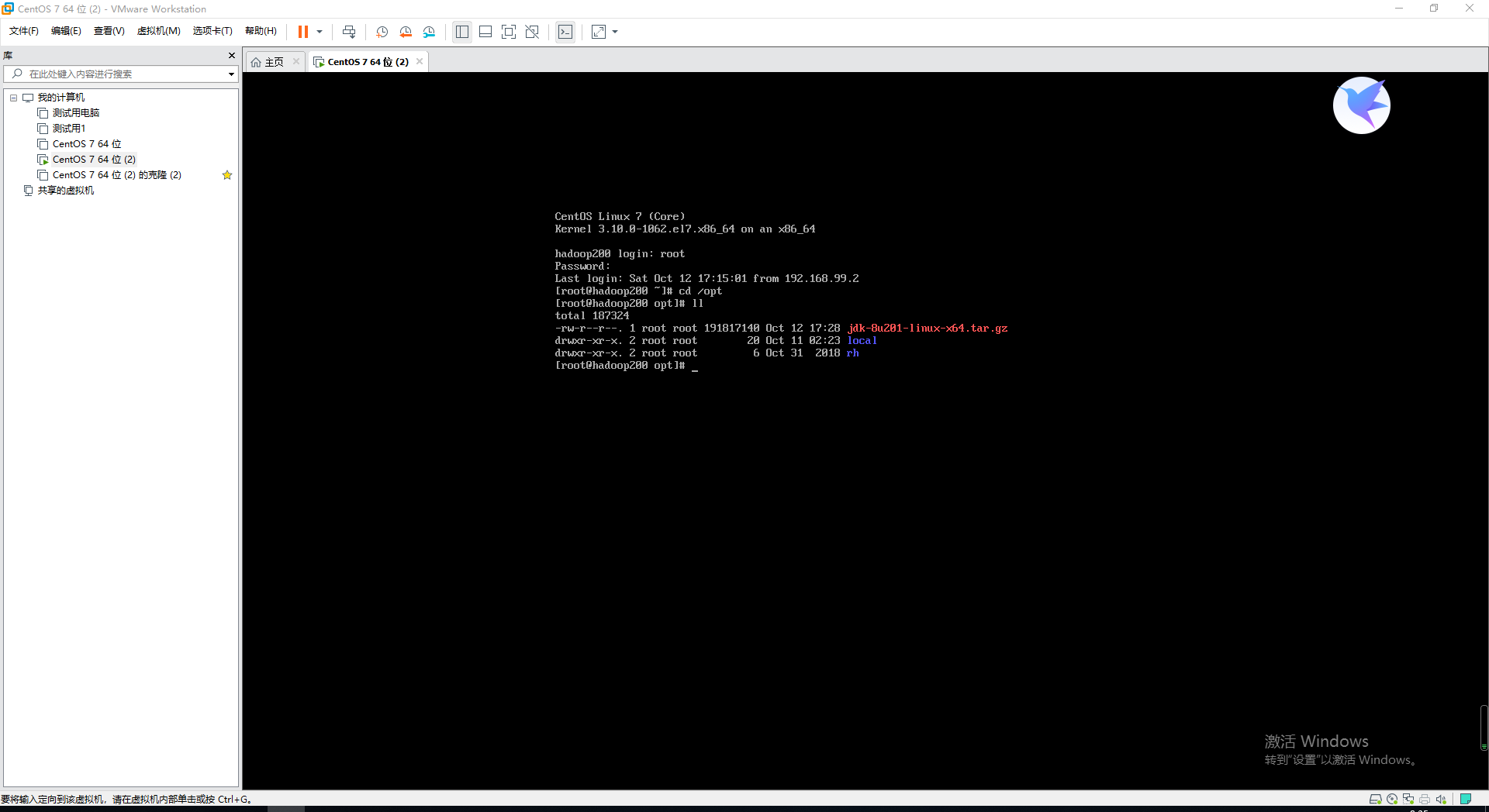 输入 cd /opt 命令进入到opt文件夹中