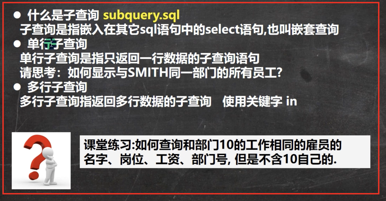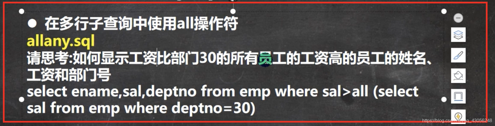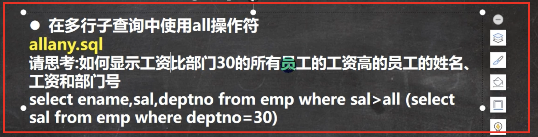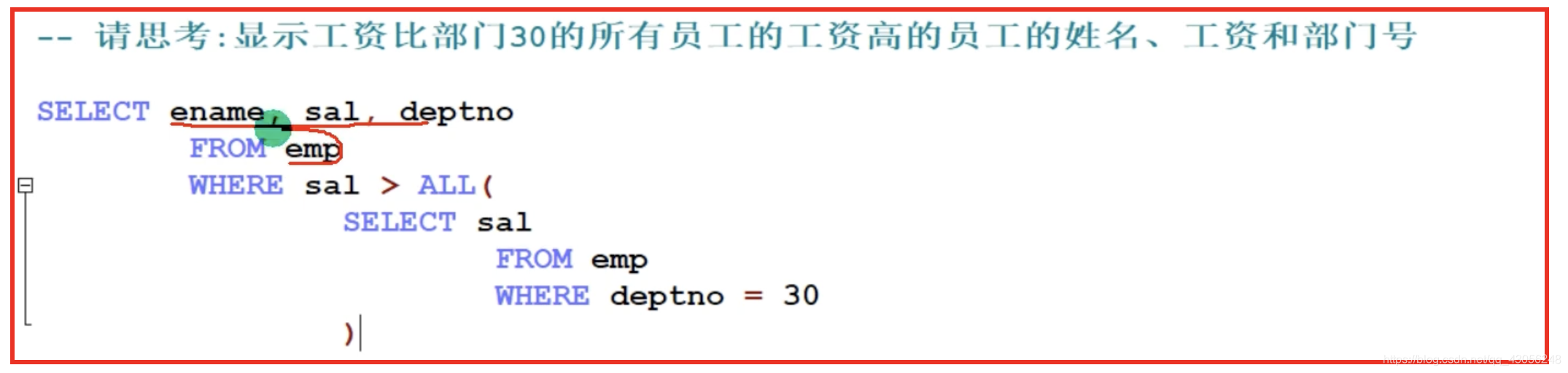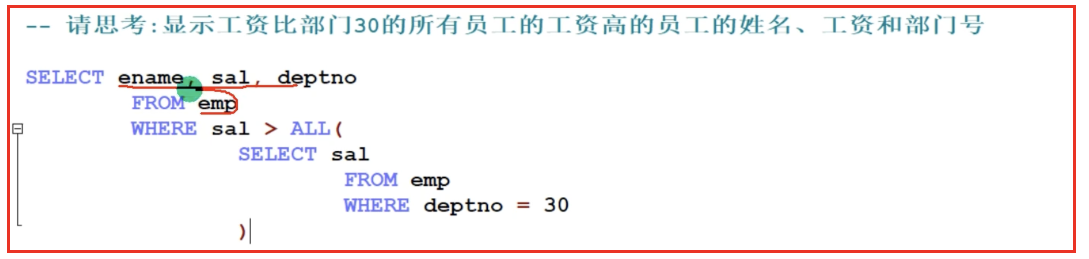 3.多行 单列 子查询:(要搭配:IN,ANY,ALL 等使用)