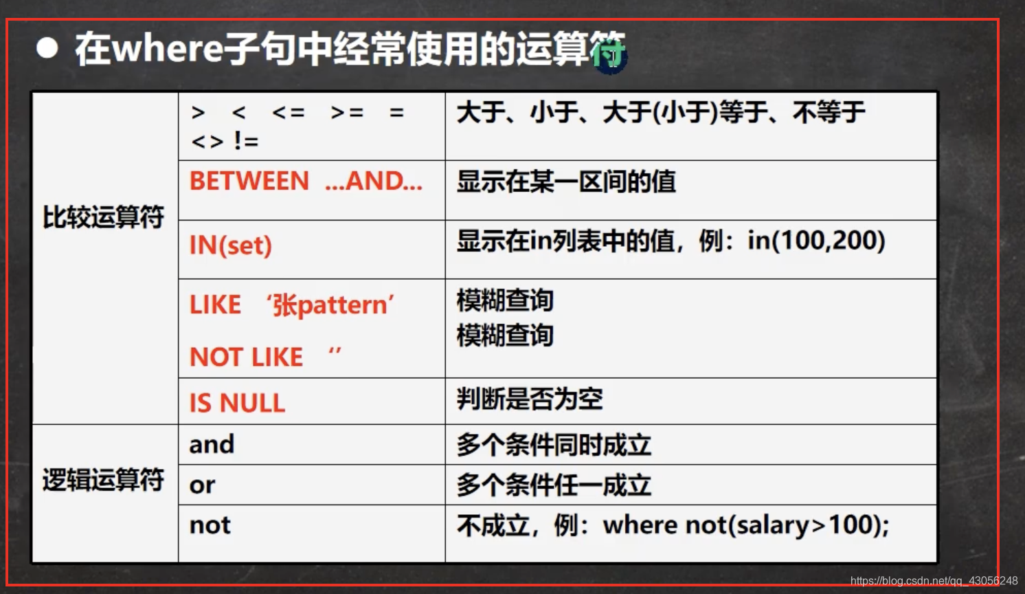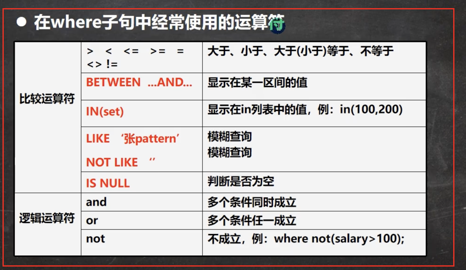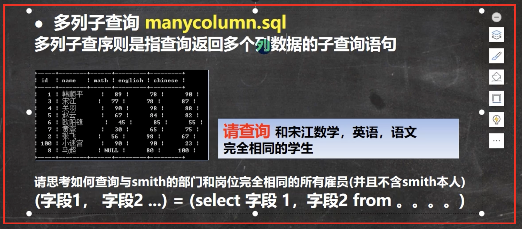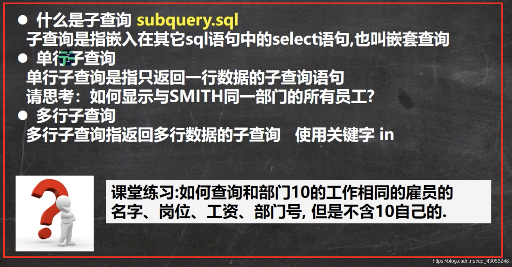 3.多行 单列 子查询:(要搭配:IN,ANY,ALL 等使用)