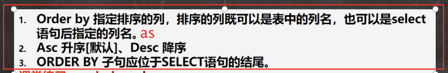 -- 在 select 语句中,可使用 as 语句,指定别名