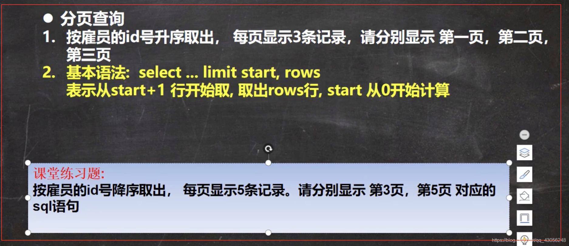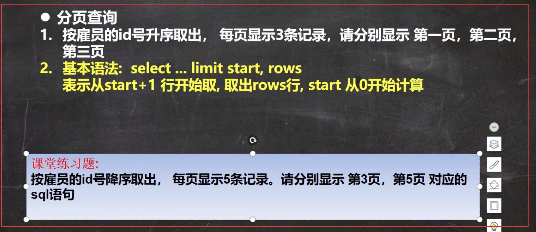 LIMIT 每页显示的记录数 * (第几页- 1),每页显示记录数;