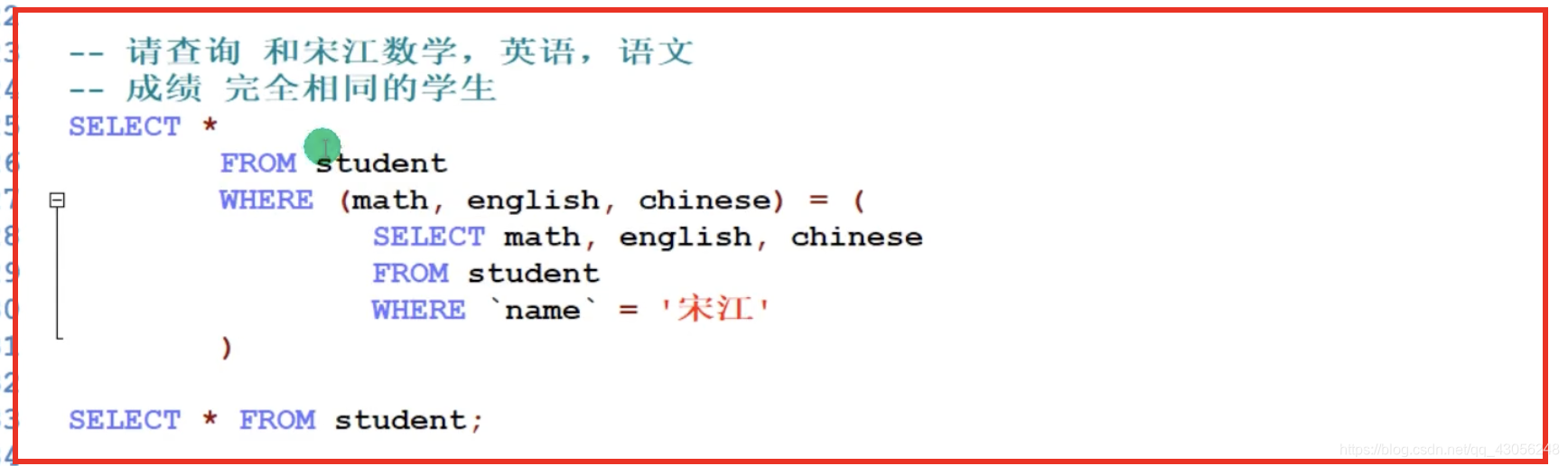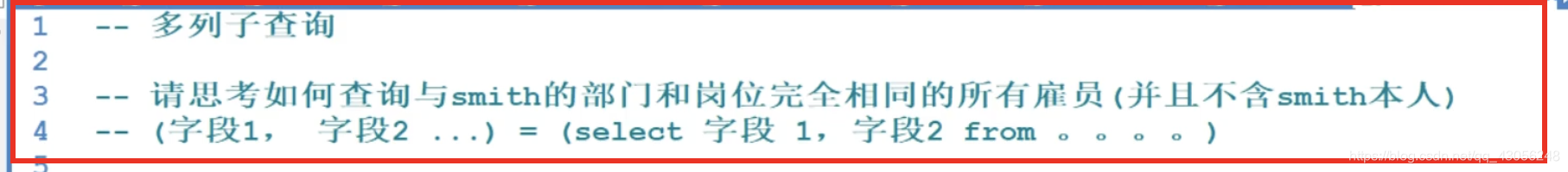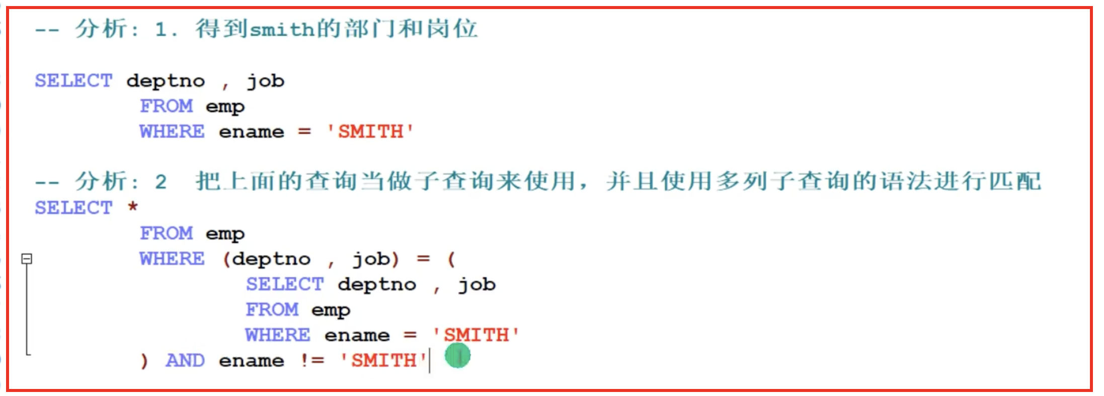 5. 单行 多列 子查询:使用 :(,,)=(,,)