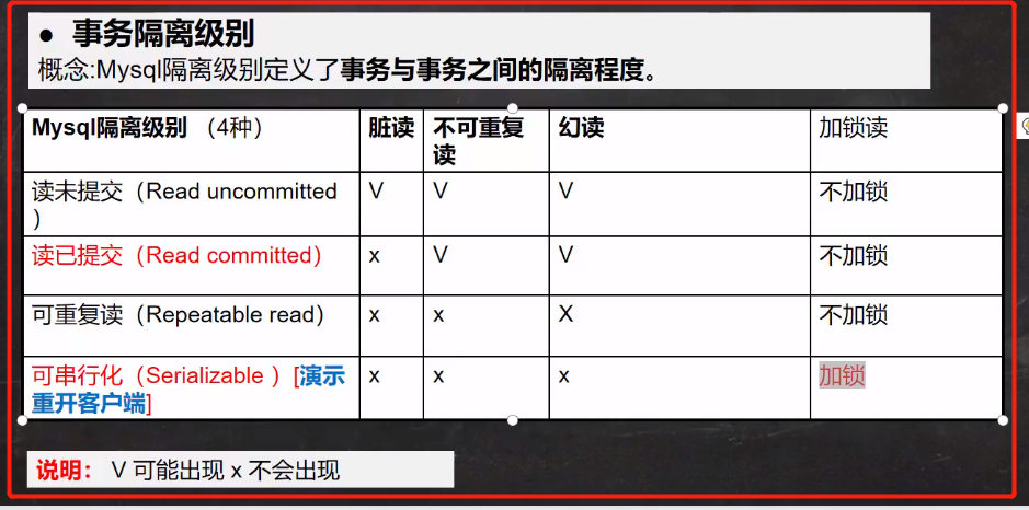 c:事务隔离级别:(定义了 事物与事物之间的 隔离程度)