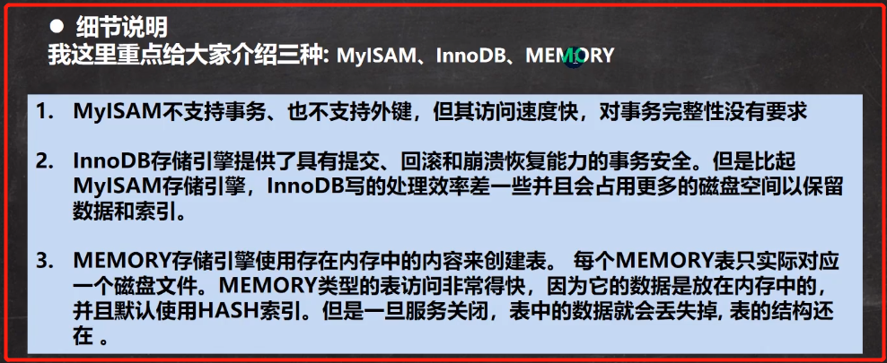 myisam:添加速度快,不支持事务,不支持外键,支持表级锁。