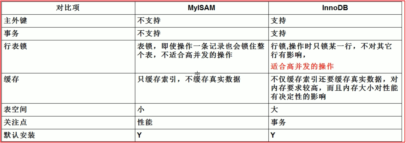 innoDB:支持事务 ,支持外键,支持行级锁。
