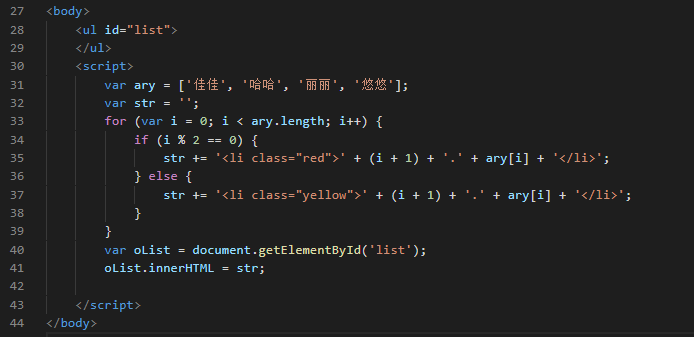 str += '<li class="yellow">' + (i + 1) + '.' + ary[i] + '</li>';
