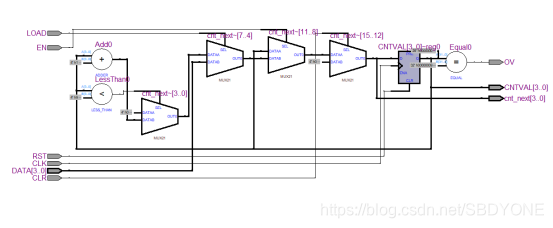 该计数器带有多种信号,其中同步清零CLR的优先级最高,使能EN次之,LOAD最低。
