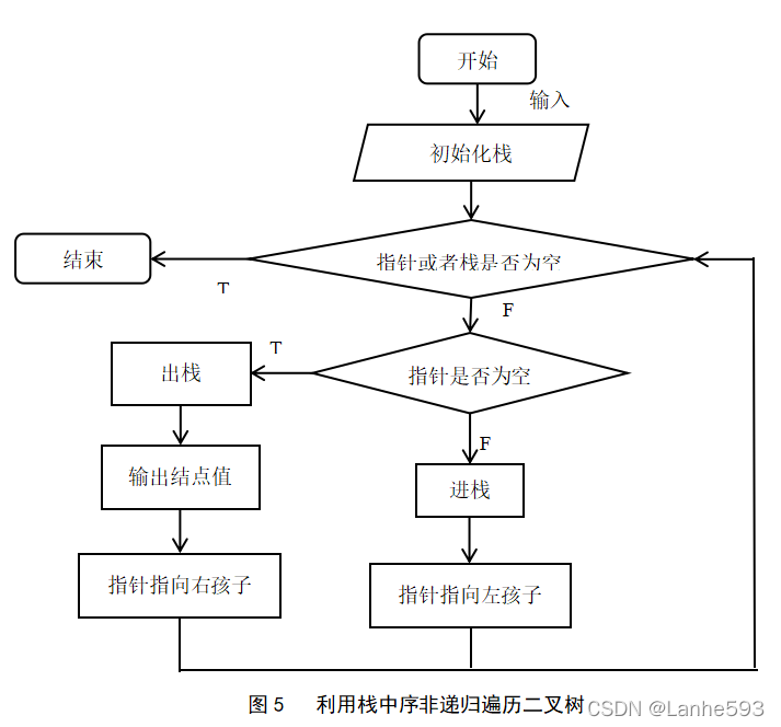 (4)二叉树的中序非递归遍历。算法流程如图5所示。