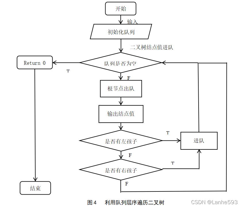 (3)二叉树的层序遍历。算法流程图如下图4所示。