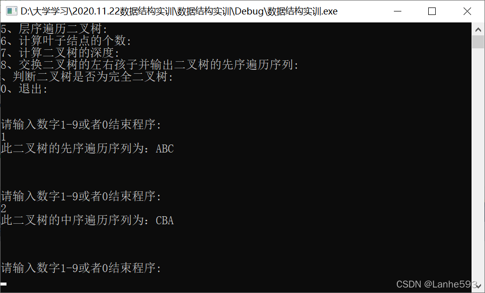 (6)菜单功能:对二叉树的各种遍历和应用进行选择。