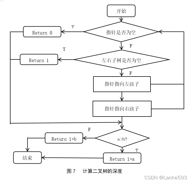 (6)二叉树的应用算法—求二叉树的深度。算法流程如图7所示。