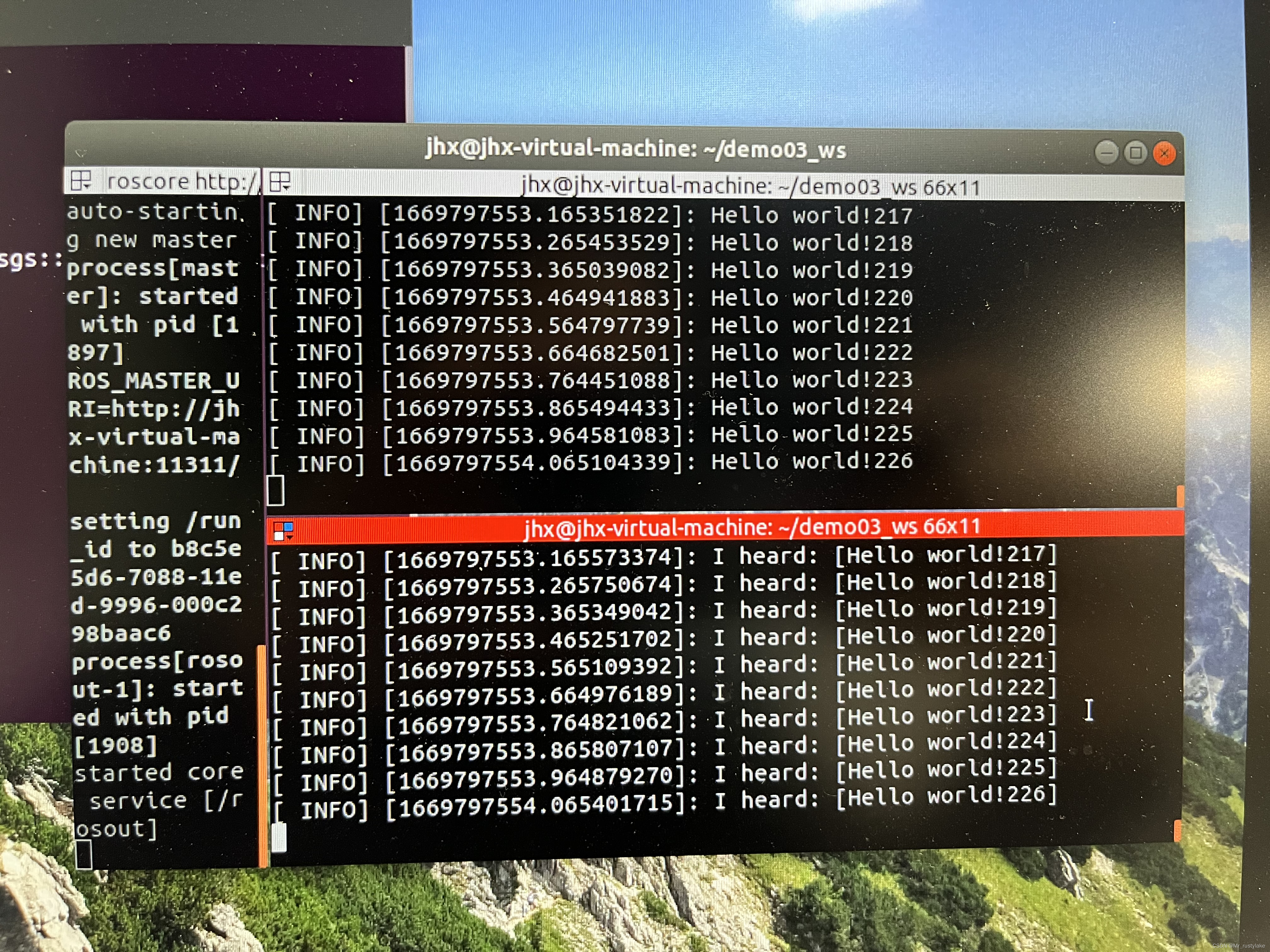 补充:因为订阅者在发布者处注册需要时间,所以可能一开始的数据无法接受到,此时我们可以在发布者的cpp文档中的while循环前加上ros::Duration(1).sleep(); 使订阅者有时间注册而不错过数据