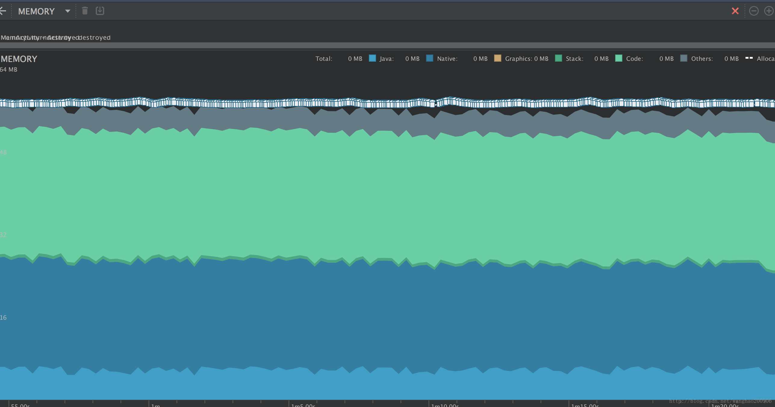 MemoryProfile内存图为锯齿状,并伴随大量的白色垃圾桶。