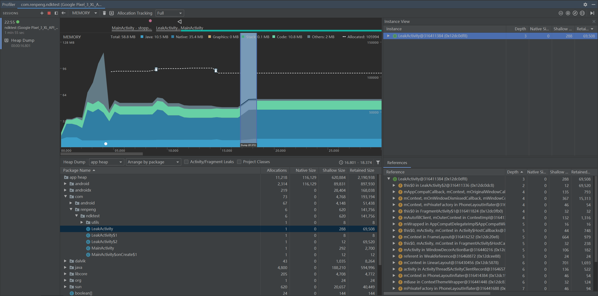 ╰→ com.example.androidtest.LeakActivity instance