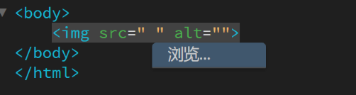 2.图片导入标签:在body部分输入img,再按下快捷键TAB键,导入图片标签自动生成,在 src部分按下空格键,选择图片的路径即可