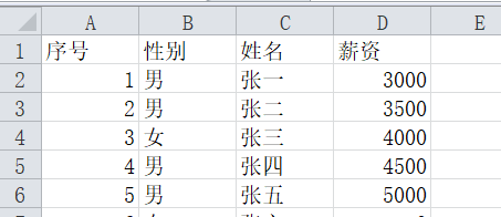 dataframe=study.loc[study['性别']=='男',['姓名','薪资']] #筛选性别为男,输出姓名、薪资两项部分表格按照条件筛选,打印:
