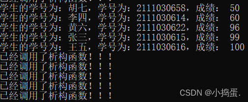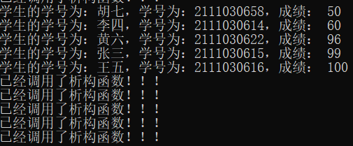创建一个对象数组,数组的元素是学生对象,学生的信息包括学号、姓名和成绩(一门课成绩),在main函数中将数组元素按学生成绩从小到大的顺序排序并显示出来。(学生对象不得少于5个,显示定义构造函数和析构函数,并在里面加上测试语句)
